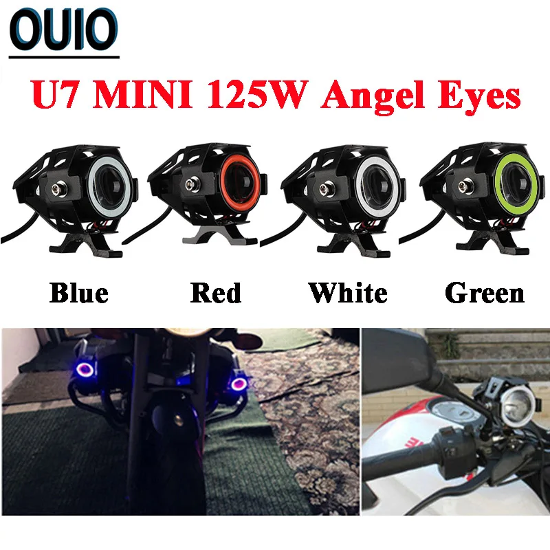 Hot Sale 2PCS LED Motorcycle Headlight 125W U7 Mini Angel Eye Bulbs Motorcycle Scooter Motorbike Lamp 12V Le