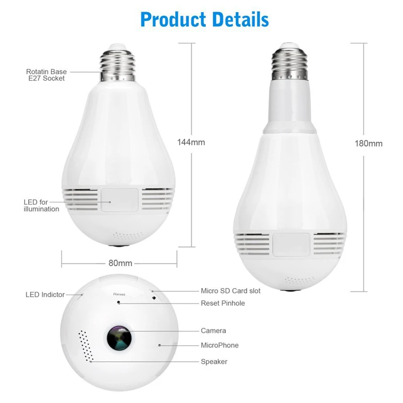 Bulb Lamp Wireless IP Camera Wifi 1080P Panoramic FishEye Home Security CCTV Camera p2p 360 Degree